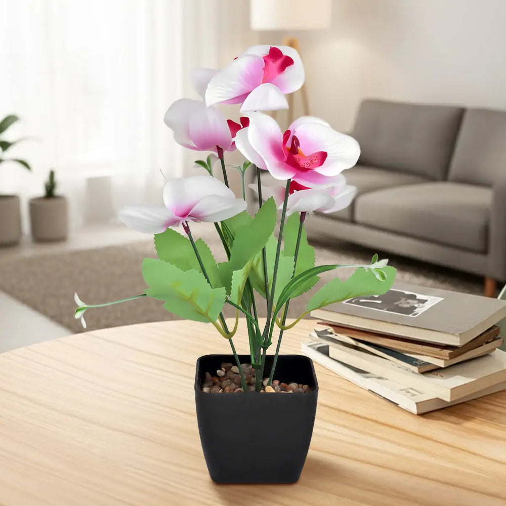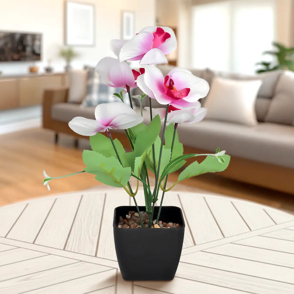 Añade un toque de sofisticación y frescura a cualquier espacio con nuestra maceta con orquídea artificial.