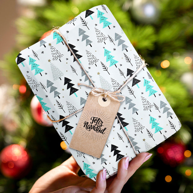 Papel con Diseño de Pinos Navideños para Envolver Regalos