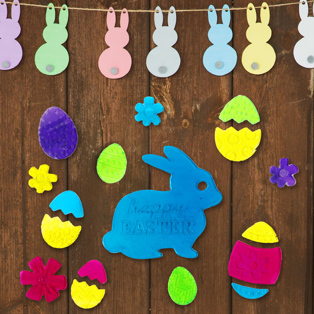 ¡Dale un toque de pascua a tu decoración! Esta decoración de gel adhesivo es perfecta para decorar ventanas, espejos y superficies lisas de manera fácil y divertida. Su diseño en gel translúcido les da un efecto vibrante cuando la luz los atraviesa, creando un ambiente romántico y alegre.