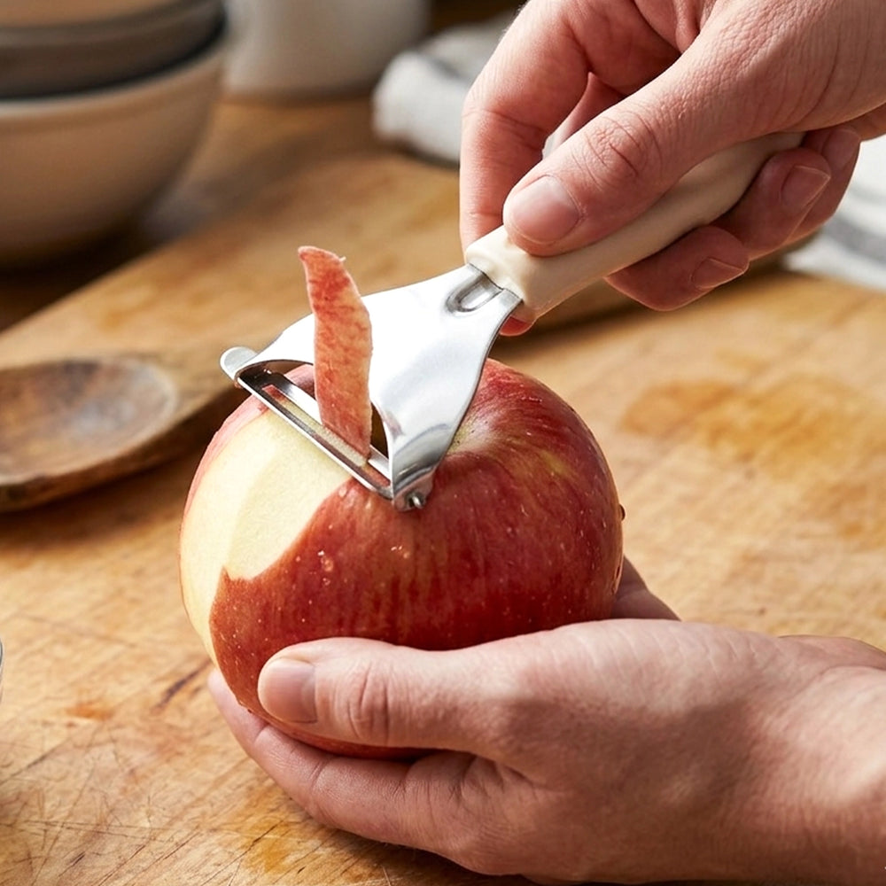 Ideal para frutas y verduras, su diseño ergonómico te permite pelar con rapidez y sin esfuerzo.