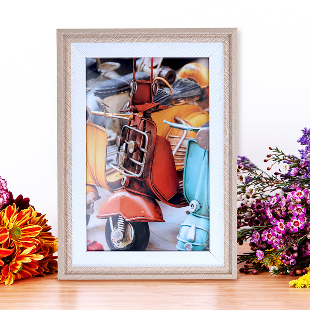 Portarretratos con Marco color Arena con Blanco 10x15cm