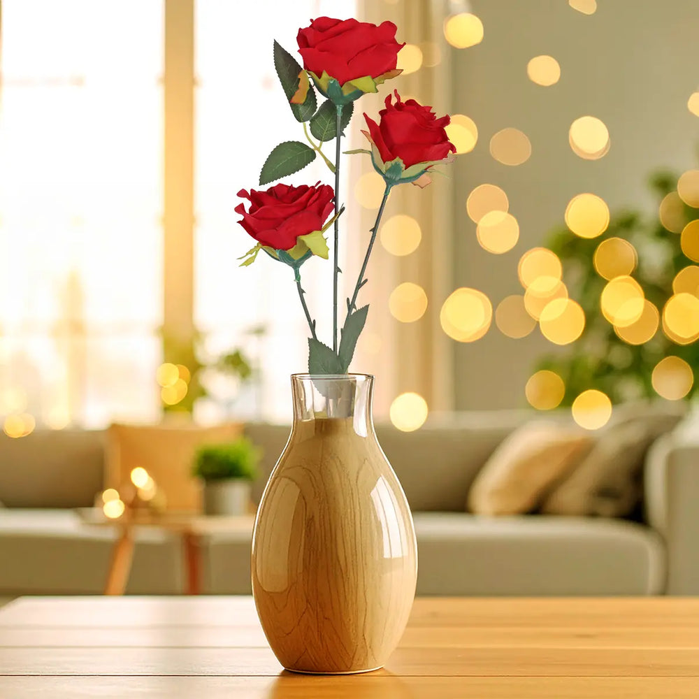 Rosa Artificial, 3 Flores, Color Rojo está agotado y se enviará tan pronto como vuelva a estar disponible.