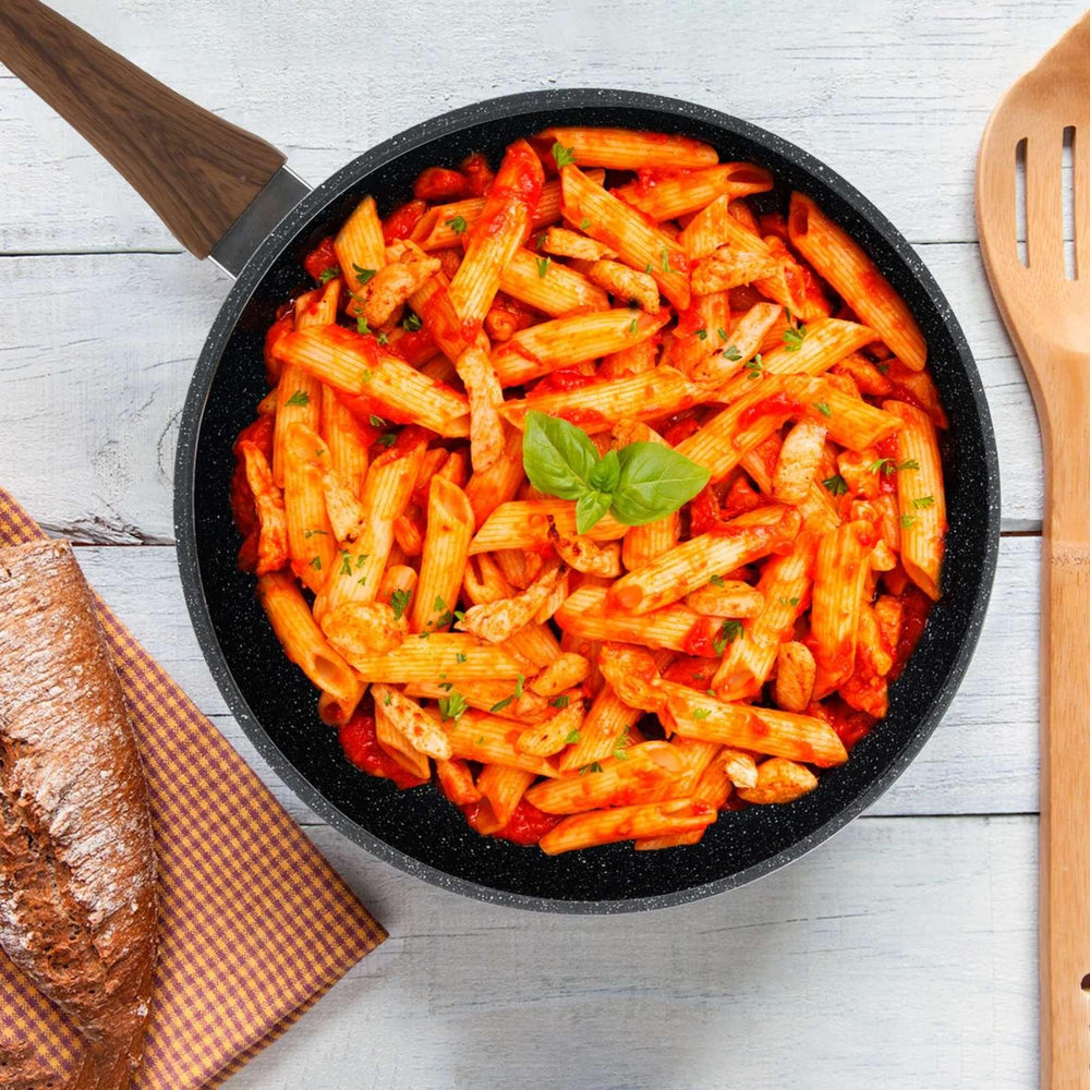 Descubre la perfección en cada cocción con el Sartén Premium Granite+ 24cm de MasterChef® by Hukën®. Ideal para todo tipo de preparaciones, su antiadherente superior facilita la cocción y limpieza, mientras que el mango ergonómico y aislado con efecto de madera proporciona una manipulación segura y cómoda. Su elegante acabado de mármol granito añade sofisticación a tu cocina. Compatible con estufas de gas, eléctricas y parrillas de inducción, este sartén es versátil y funcional. Fabricada sin sustancias tóxicas y con aluminio forjado ultra resistente, asegura durabilidad y seguridad. Además, su tecnología avanzada permite un calentamiento rápido y uniforme, garantizando resultados perfectos. ¡Es momento de transformar tu cocina con estilo y eficiencia!