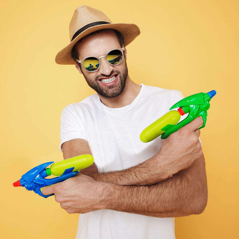 - Se puede disfrutar de una batalla de agua en las piscinas, playas y patios traseros.