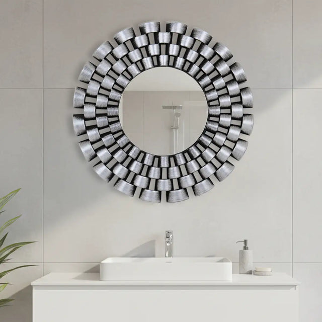 - Decorativo: Si vives en un espacio más pequeño, este gran espejo redondo puede engañar la vista para que parezca más grande, ayudando a que la luz rebote alrededor de la habitación, ampliando visualmente el espacio, mientras sirve como arte de pared funcional.