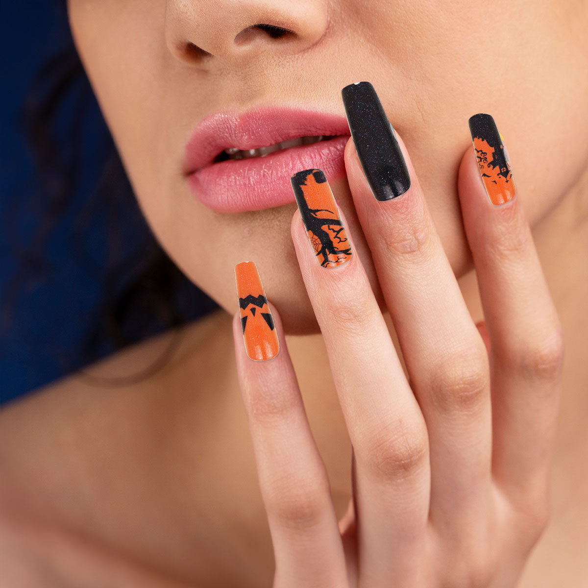 Set de Uñas Postizas, Halloween, Color Naranja