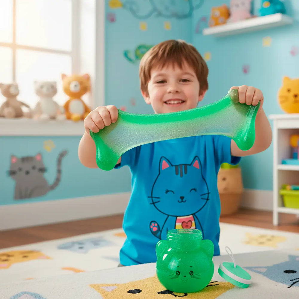 Slime, Gato, Color Verde, 320 gr está agotado y se enviará tan pronto como vuelva a estar disponible.