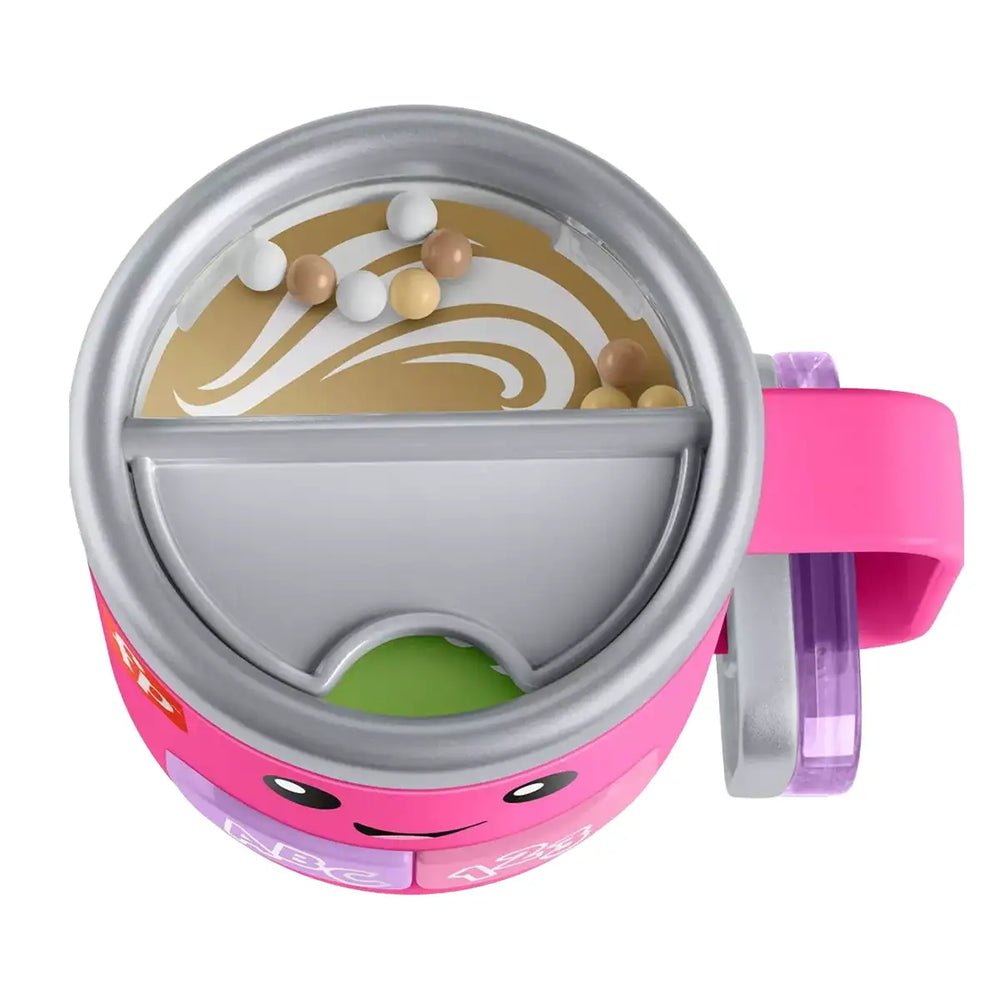 - Juego sorpresa: gira la tapa para descubrir cuentas de sonajero o un divertido remolino de café con leche.