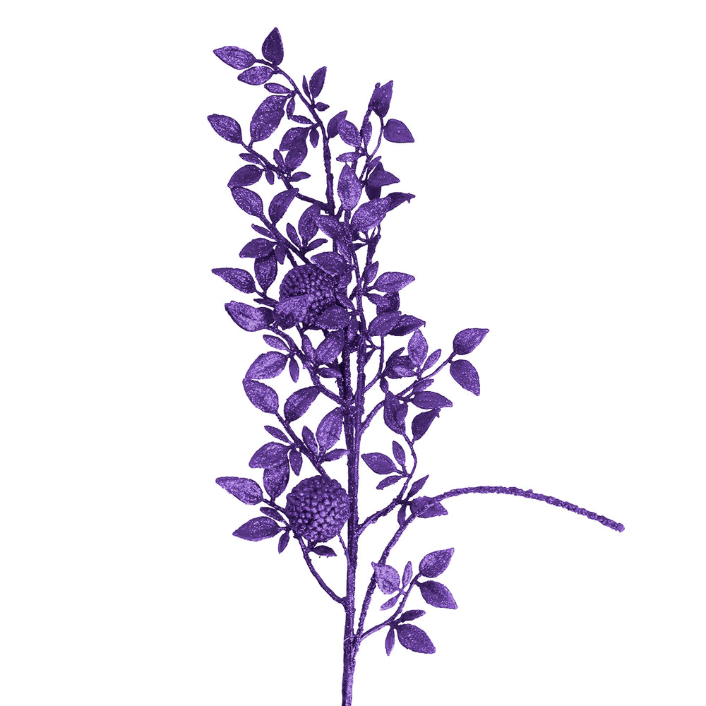 Vara de Follaje Artificial, Glitter, Color Morado