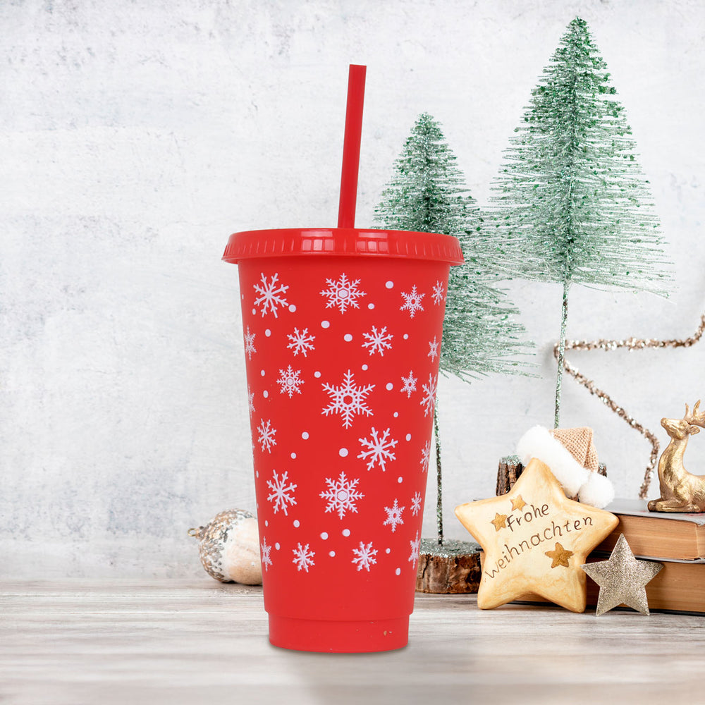 Vaso de Plástico con Tapa y Popote, Navideño, Copos de Nieve